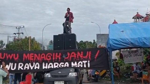 Keranda Bertuliskan “Gubernur Sulsel” Dibentangkan di Jalan Nasional, Tuntutan Luwu Raya Menggema