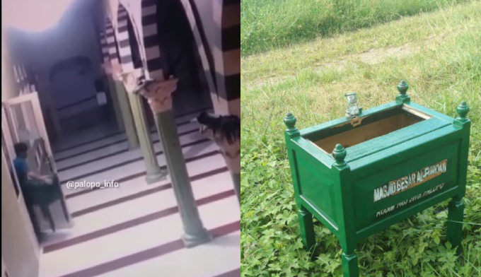 “Seorang pemuda mengangkut dan diduga mengambil isi kotak amal Mesjid KODIM 1403 AL-Furqoon, Pasar sentral Palopo,” tulis caption dalam postingan akun Palopo_info.