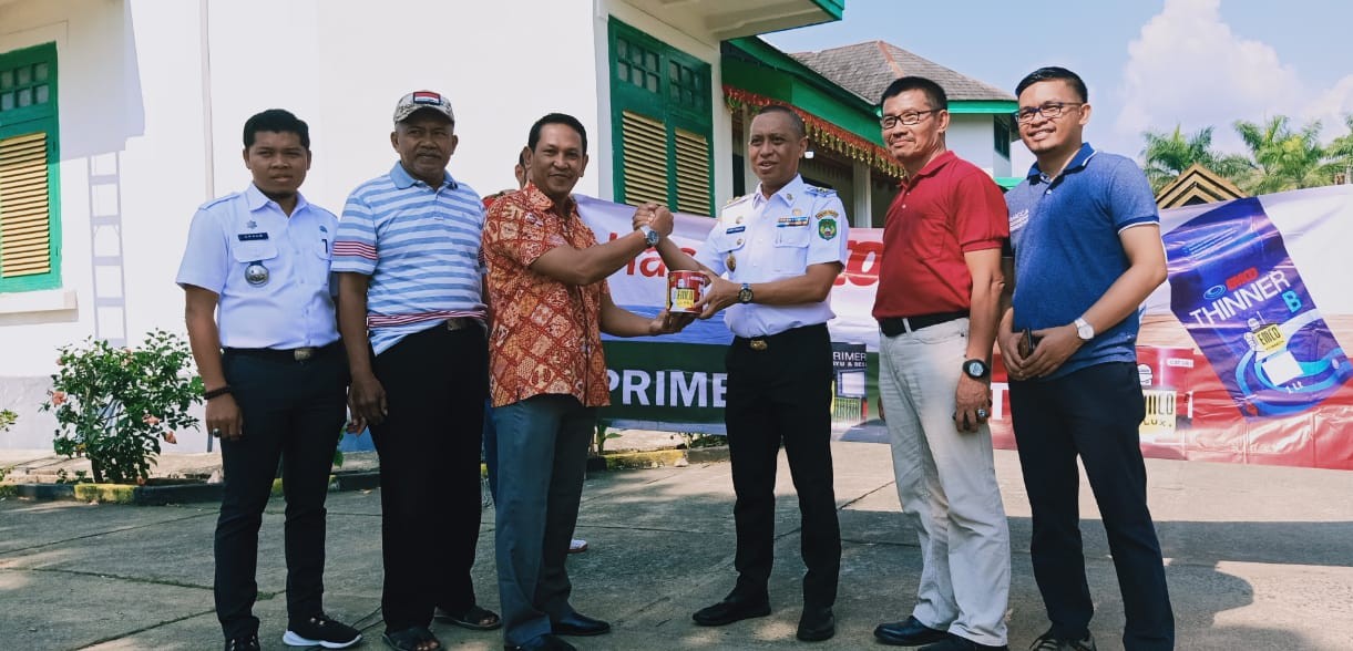 PALOPO — Dalam rangka mensukseskan Festival Keraton Nusantara (FKN) 2019 yang dilaksanakan di Tana Luwu dan berpusat di Kota Palopo PT. Mataram Paint (Cat EMCO) memberikan bantuan cat kepada panitia FKN untuk mencat kompleks istana kedatuan mulai dari pagar, langkanae dan bangunan di dalamnya.