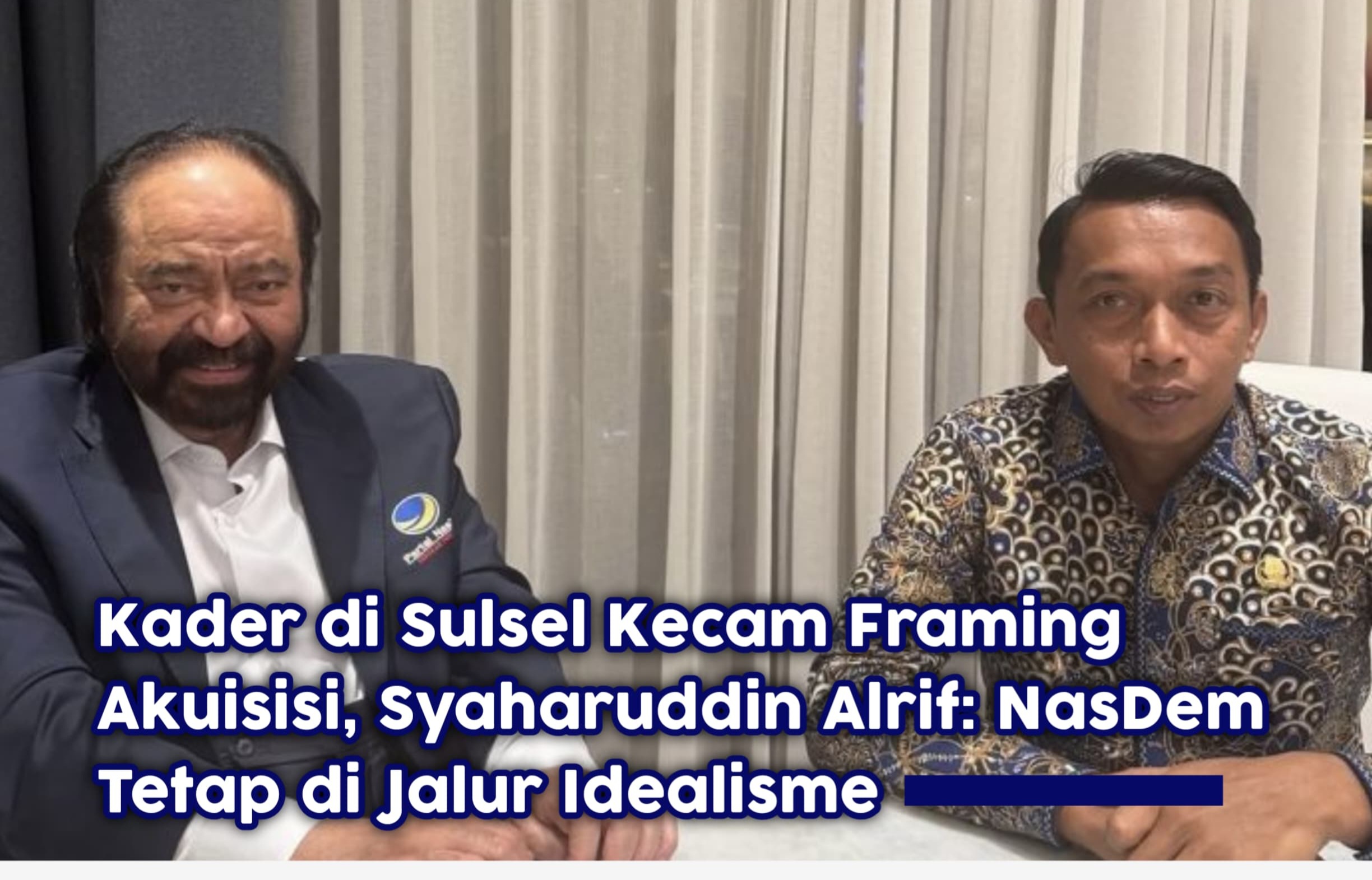 DPW NasDem Sulsel secara tegas menolak framing yang dinilai menyudutkan partai politik sebagai sekadar alat transaksi kekuasaan.