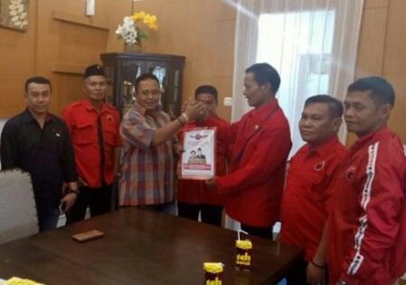 LUWU UTARA — Bupati Luwu Utara, Indah Putri Indriani (IDP) diwakili Ketua Golkar Luwu Utara Muh. Fauzi menerima formulir pendaftaran yang diantar langsung Tim Desk Pilkada PDIP Luwu Utara Yakob Banne bersama pengurus lainnya.