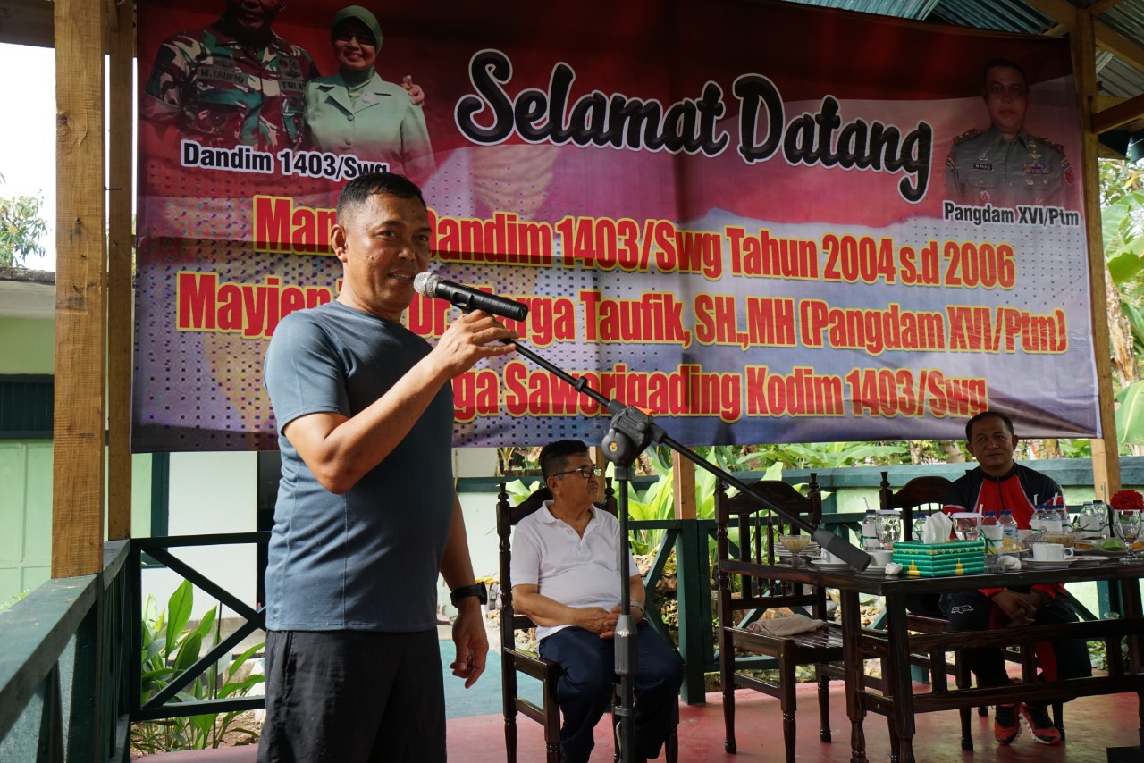 Sambutan Dandim 1403/Sawerigading Kota Palopo Lektol Inf M. Imasfy, SE., mengucapkan terimakasih atas kunjungan Pangdam Pattimura, Mayjen TNI Dr. Marga Taufik SH MH ini, beliau yang pernah menjabat sebagai Dandim 1403/Sawerigading Kota Palopo pada tahun 2004-2006, ucap Imasfy.