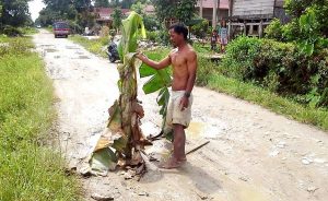 Kesal dengan Pemerintah, Warga Sabbang Selatan Tanam Pisang di Jalanan