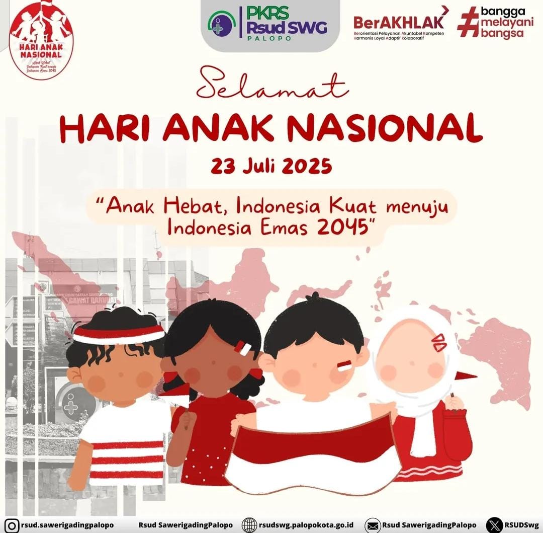 MEDIA DUTA, PALOPO – Rumah Sakit Umum Daerah (RSUD) Sawerigading Palopo turut memperingati Hari Anak Nasional yang jatuh pada Selasa, 23 Juli 2025.