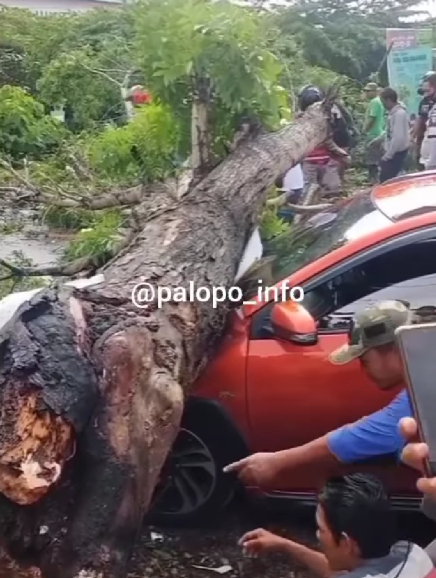 MEDU.ONLINE.WALENRANG – Pohon tumbang menimpa satu unit mobil yang sedang terparkir dan seorang pengendara motor yang melintas.