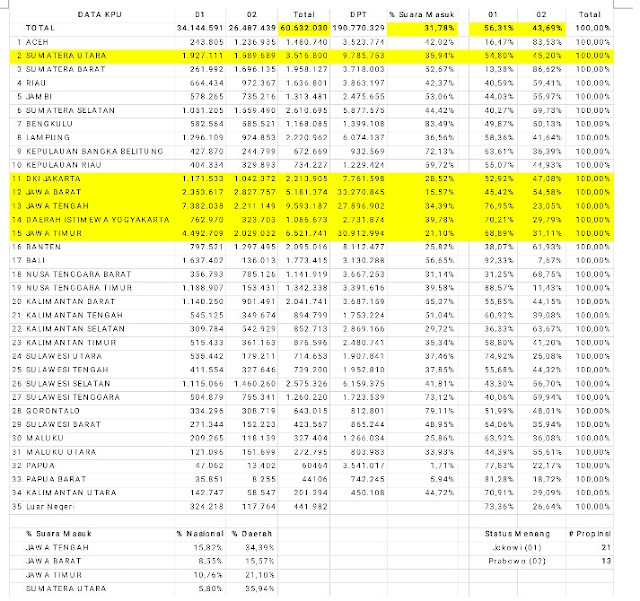 Dengan pola input data seperti itu maka Jokowi memperoleh suara 56,31 persen, dan seolah-olah kontestasi Pilpres sudah selesai dengan kemenangan mutlak untuk Jokowi.