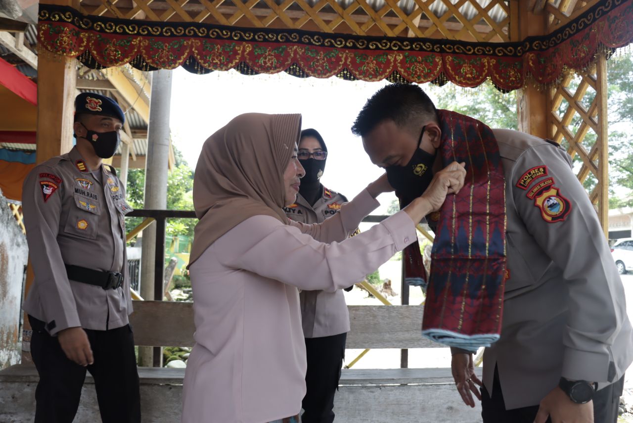 MEDU ONLINE, LUWU UTARA — Kapolres Luwu Utara, AKBP Galih Indragiri mengunjungi Makole Baebunta, Masita Kampasu Opu Daeng Tawelong di kediamannya, Selasa (2/8/2022).