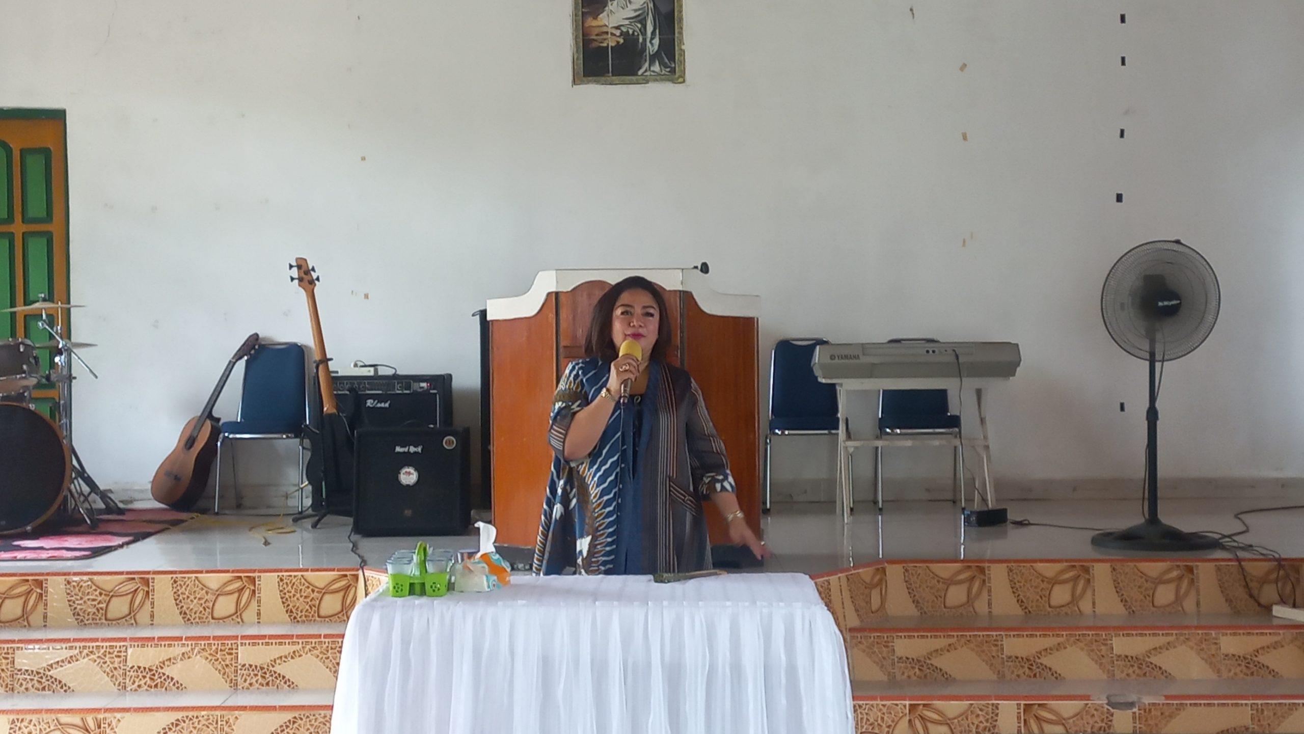 Selain melaksanakan ibadah, wanita yang biasa disapa Emmy memperkenalkan diri kepada seluruh jemaat yang hadir.