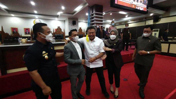 Momentum berpelukan Syaharuddin dan Arfandy dilakukan di hadapan peserta paripurna dan Plt Gubernur Sulsel Andi Sudirman Sulaiman.