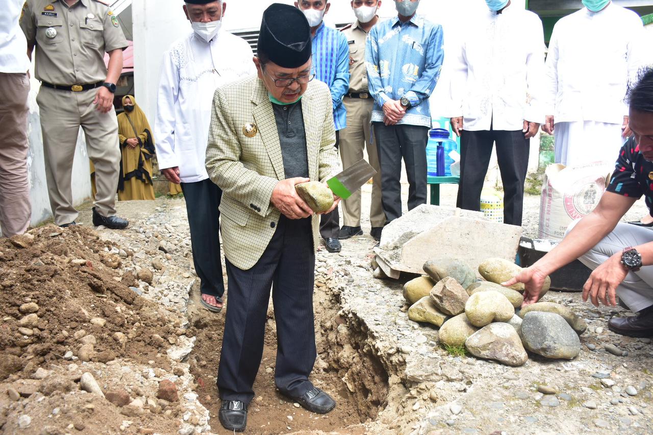 MEDU-ONLINE.PALOPO — Drs. H.M Judas Amir MH, Wali Kota Palopo, meletakkan batu pertama pembangunan Masjid Ad-Da’wah yang terletak di Jalan Dr. Ratulangi Wara Utara, Kota Palopo. Di Halaman Masjid. Jumat, 4/6/2021.